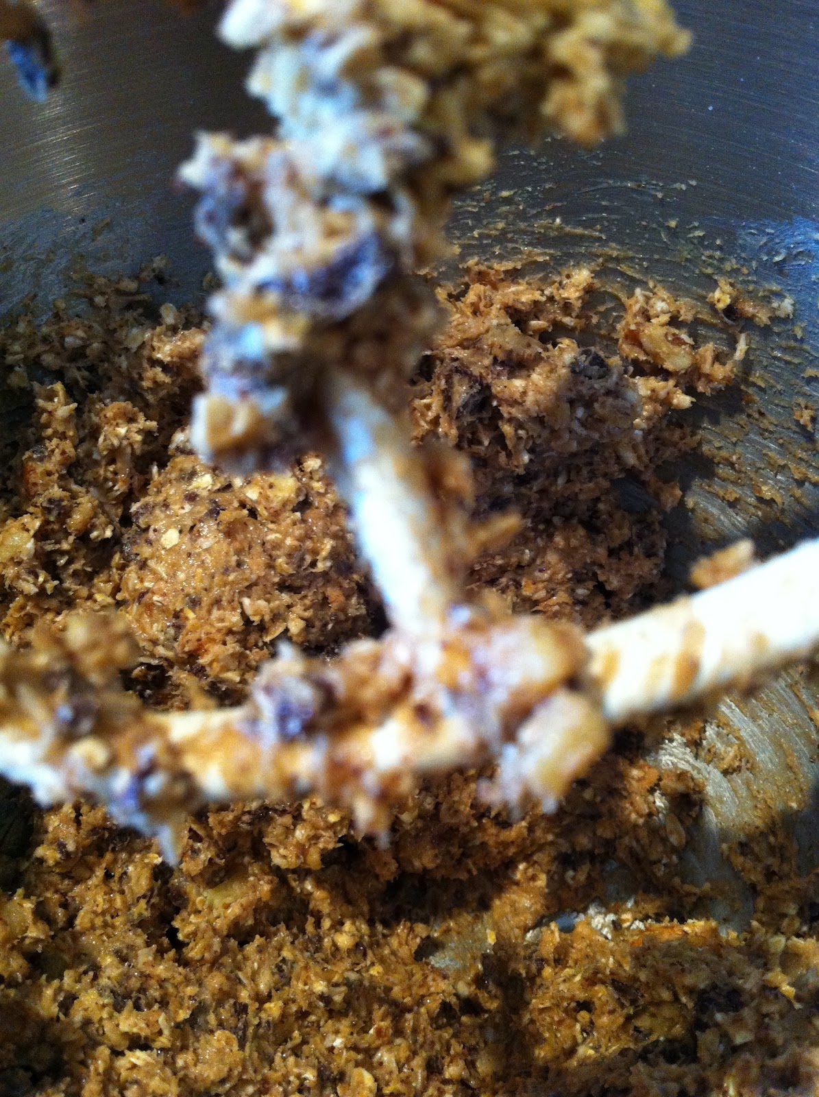 6. Mix in the chocolate, coconut and walnut pieces until they are fully mixed in.